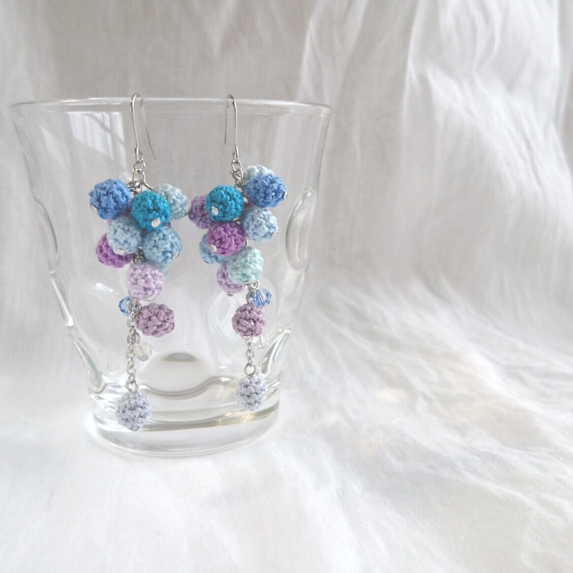 紫陽花をイメージした、青~紫系のカラーでまとめたピアス/イヤリングです。