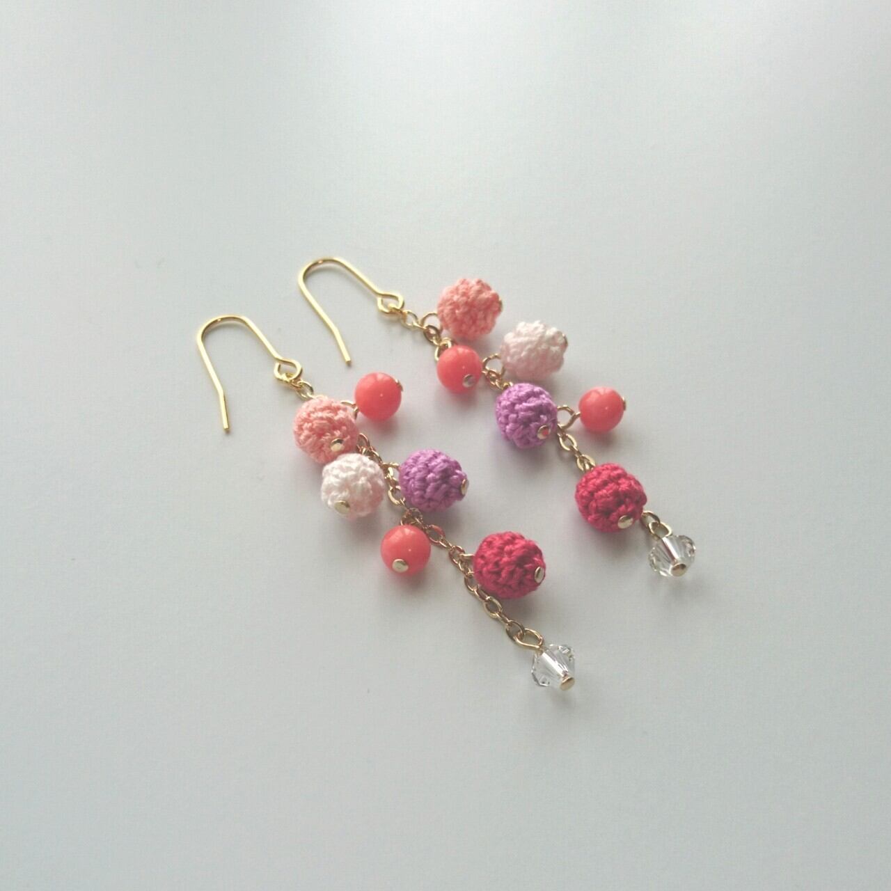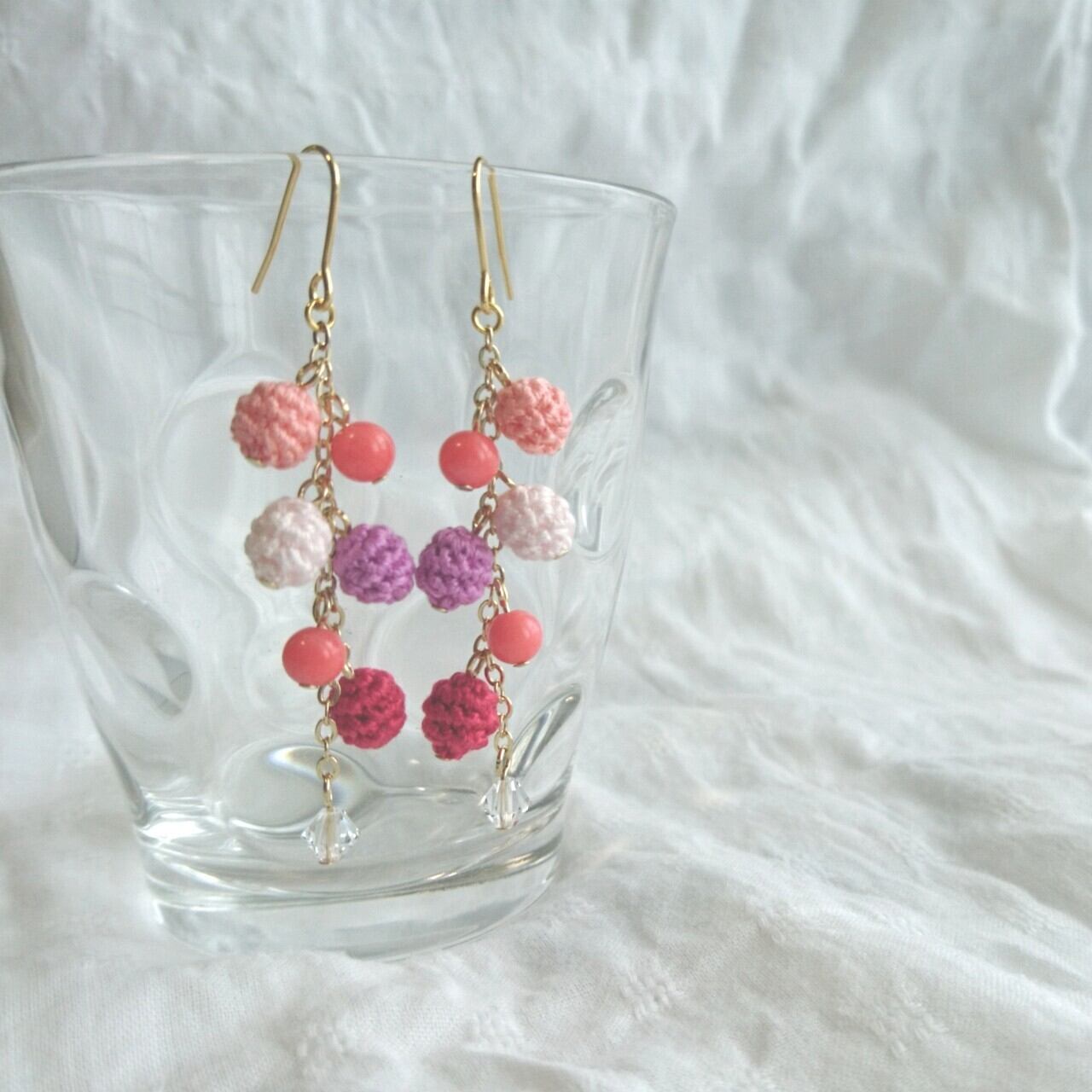 【天然石×編み玉】サンゴ ピアス/イヤリング | 刺繍糸アクセサリー みなづき