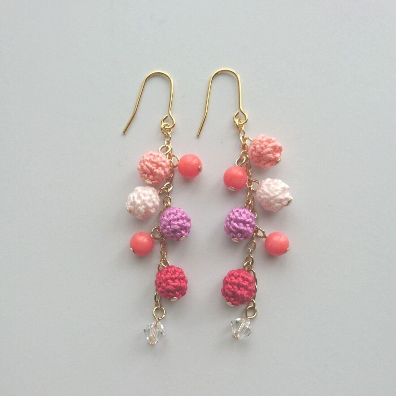 サンゴと編み玉を組み合わせたピアス/イヤリングです。 ピアスorイヤリング、ご希望の金具をオプション欄にて選択してから、カートにお進みください。