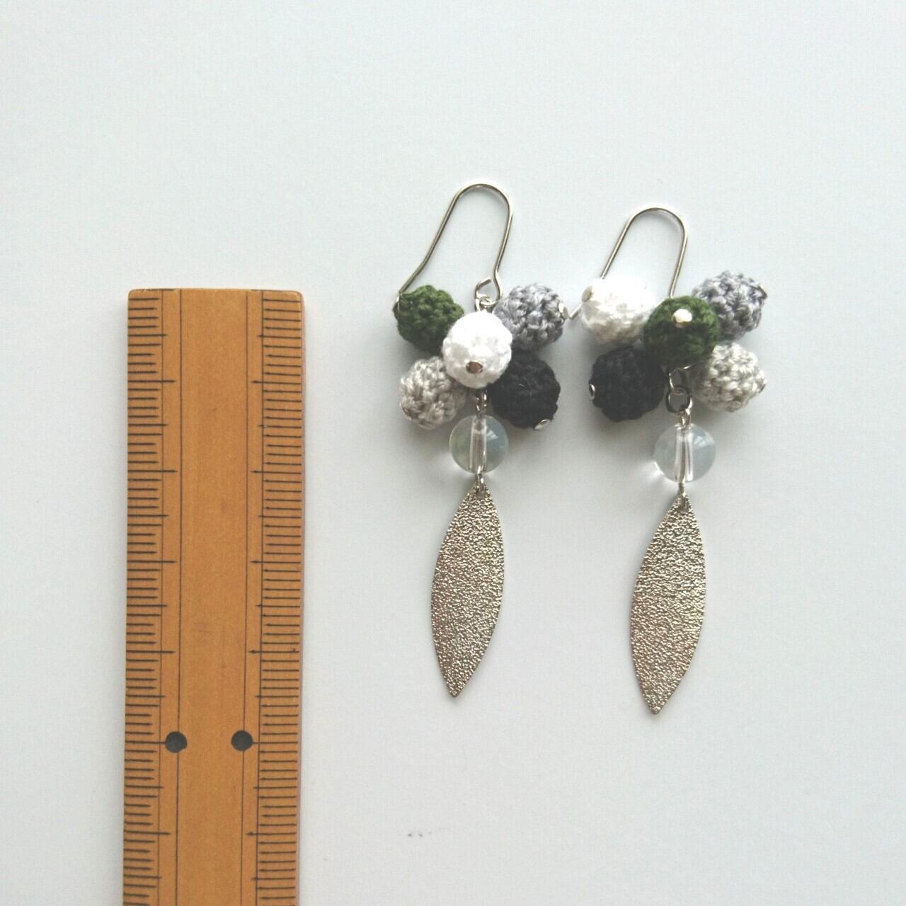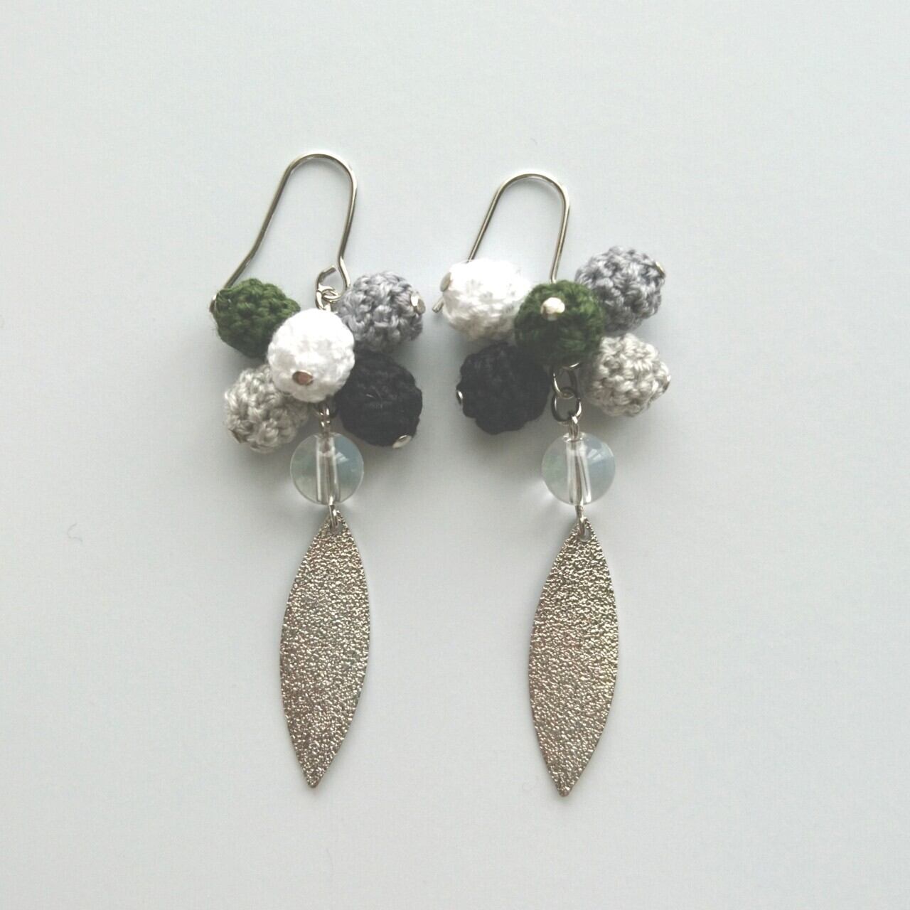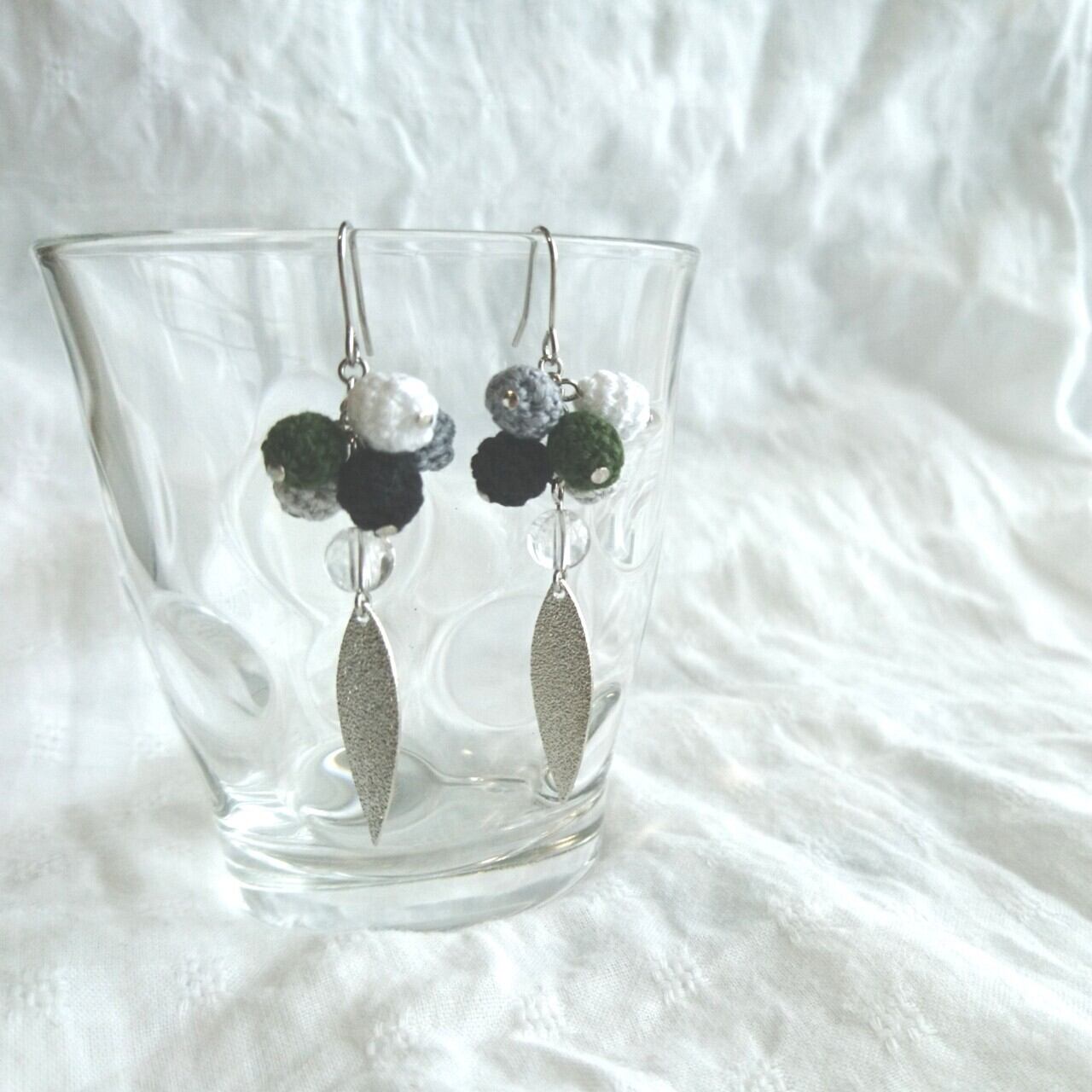天然石(水晶)と編み玉を組み合わせたピアス/イヤリングです。