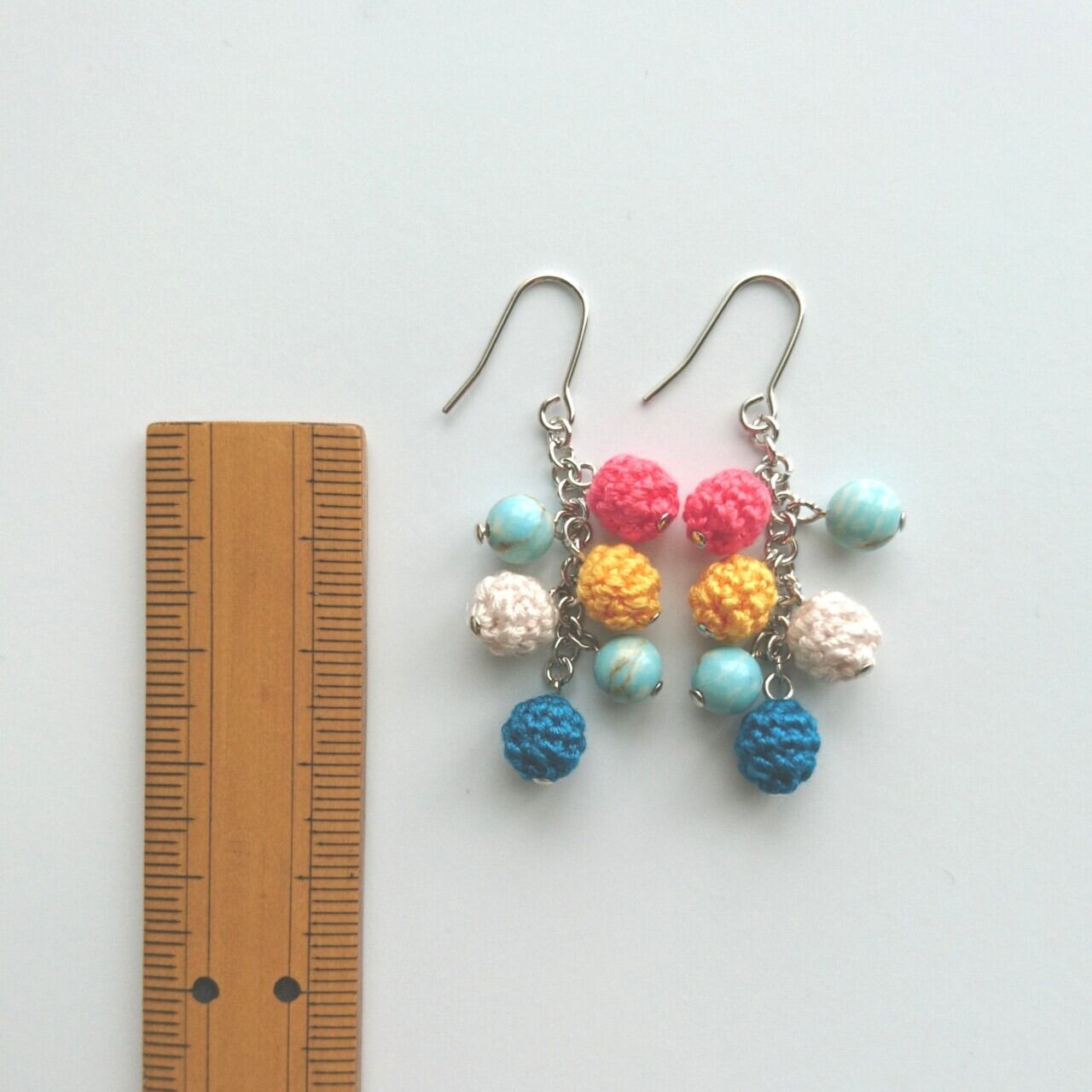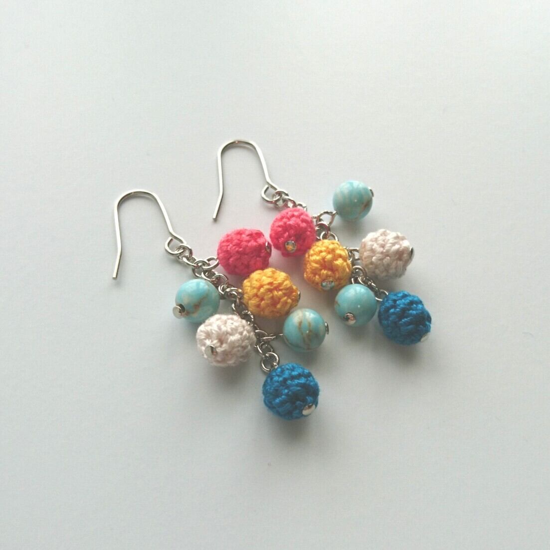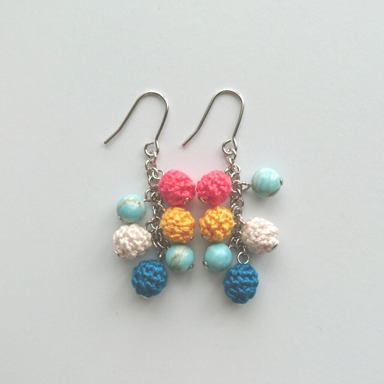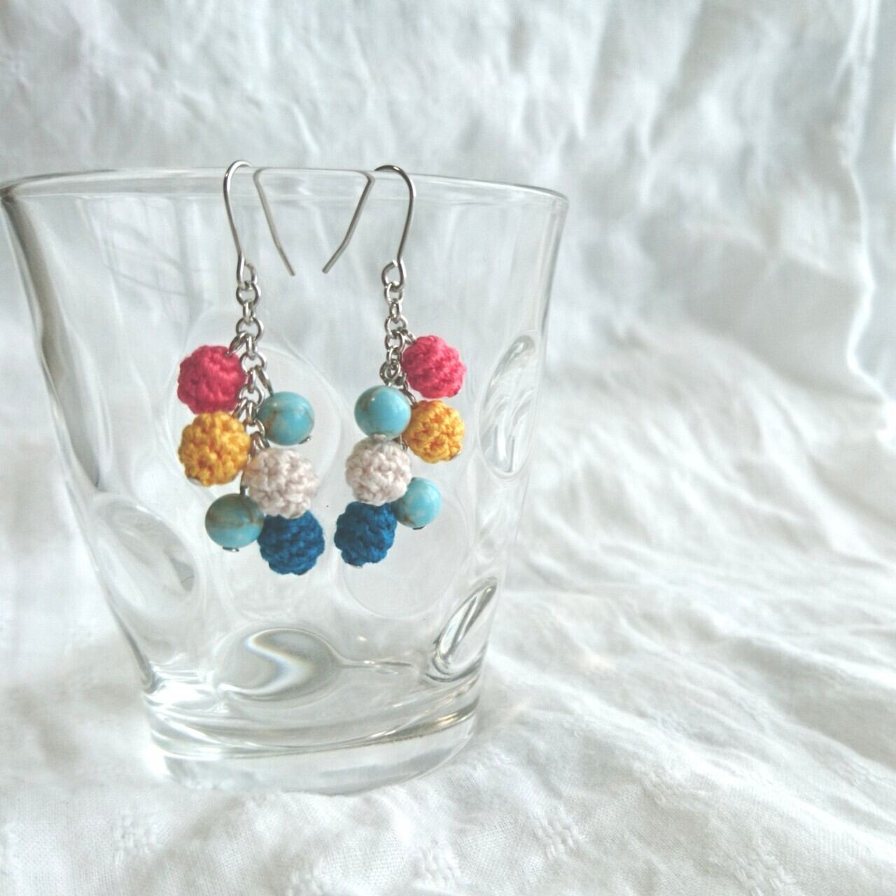 天然石(ターコイズ)と編み玉を組み合わせたピアス/イヤリングです。 ピアスorイヤリング、ご希望の金具をオプション欄にて選択してから、カートにお進みください。