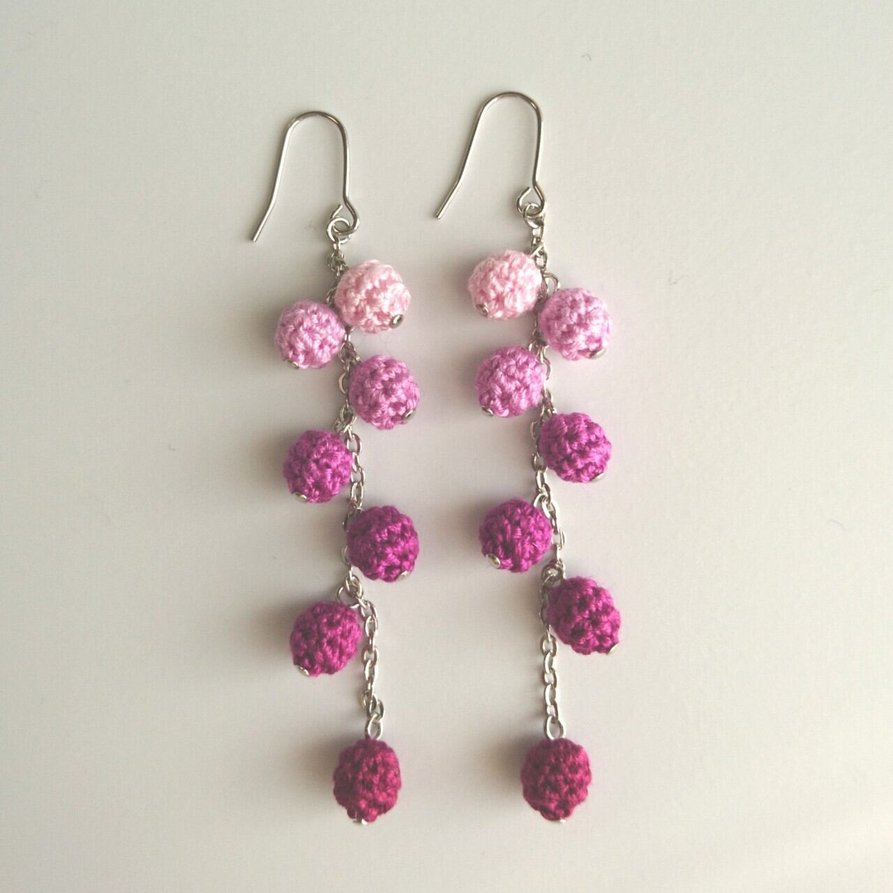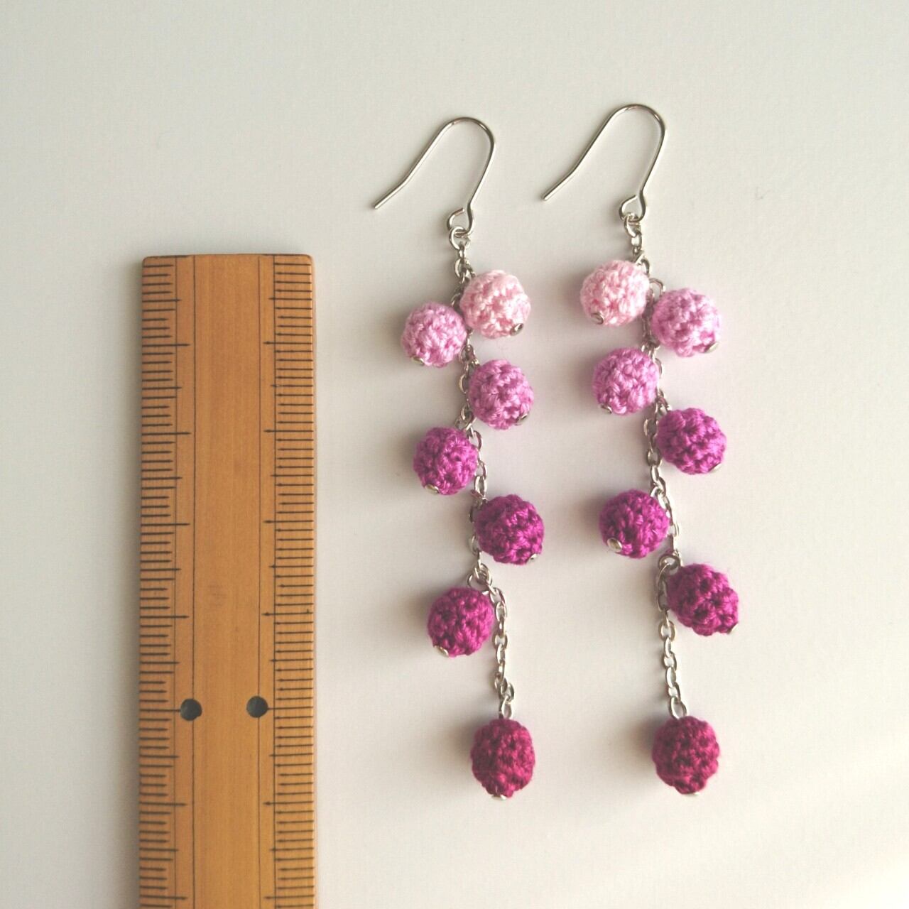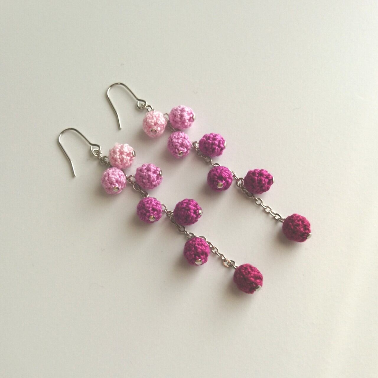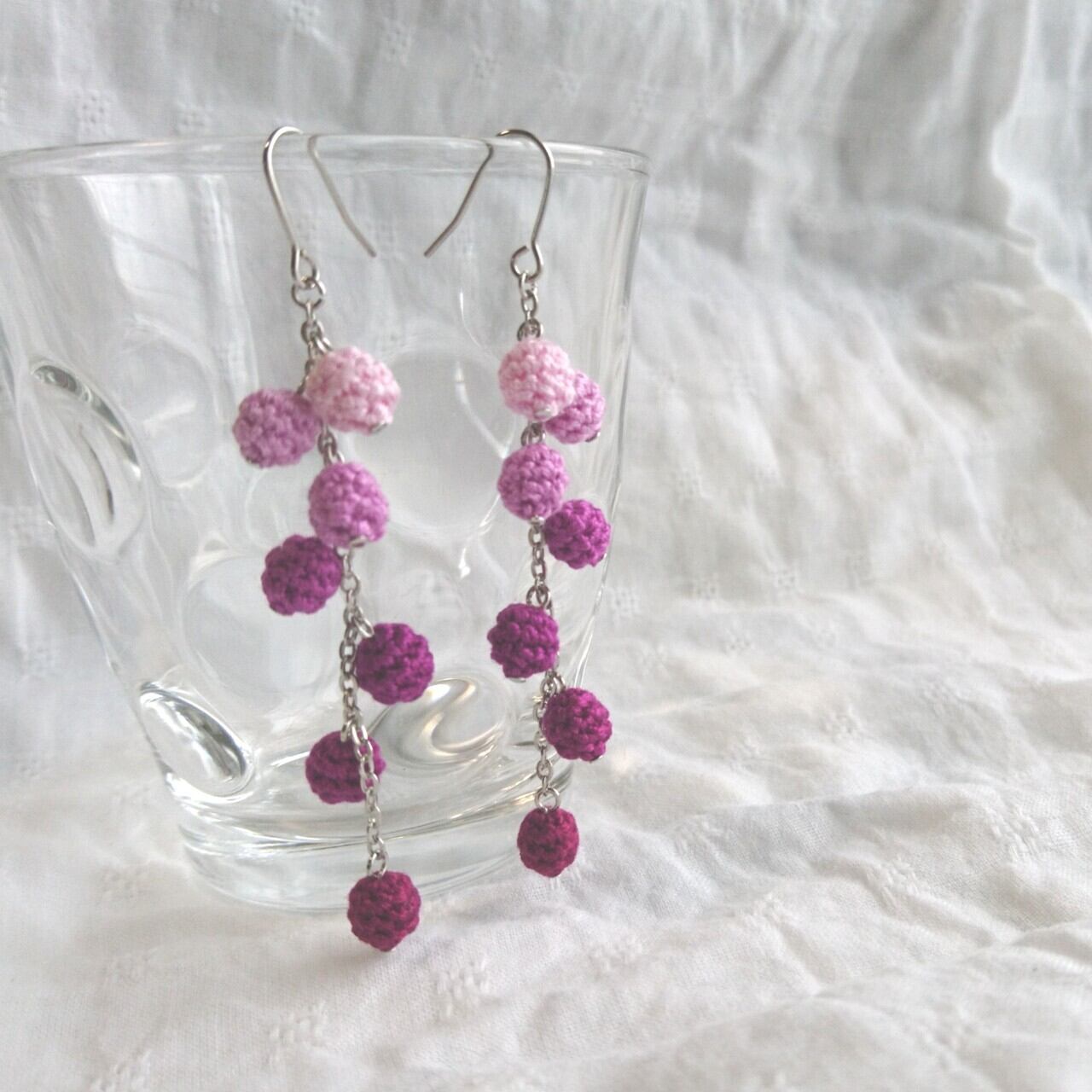 色番号の連続する7色の刺繍糸を使った、グラデーションが魅力のピアス/イヤリングです。