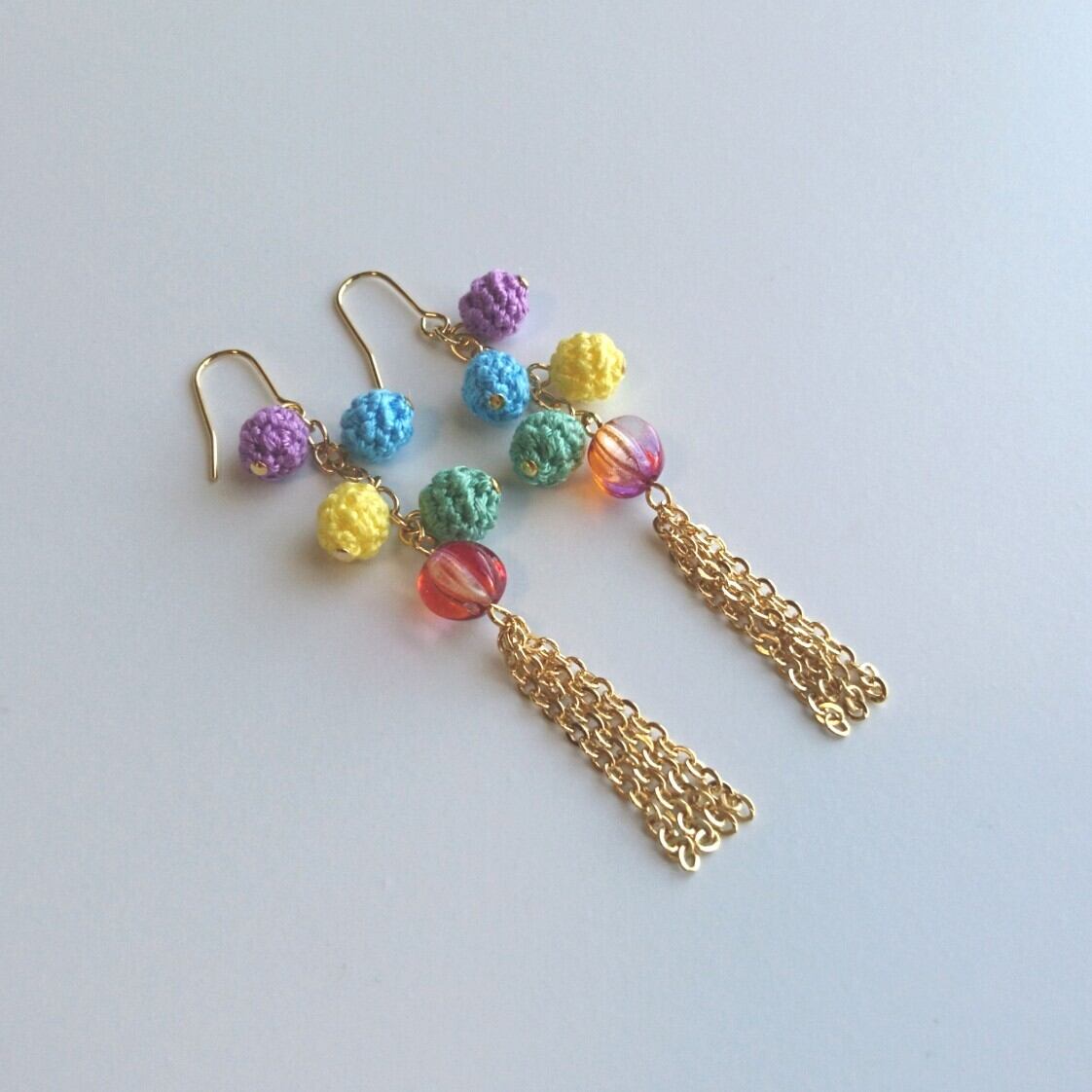 サーカスの鮮やかな衣装や華やかさをイメージした、ピアス/イヤリングです。 ピアスorイヤリング、ご希望の金具をオプション欄にて選択してから、カートにお進みください。