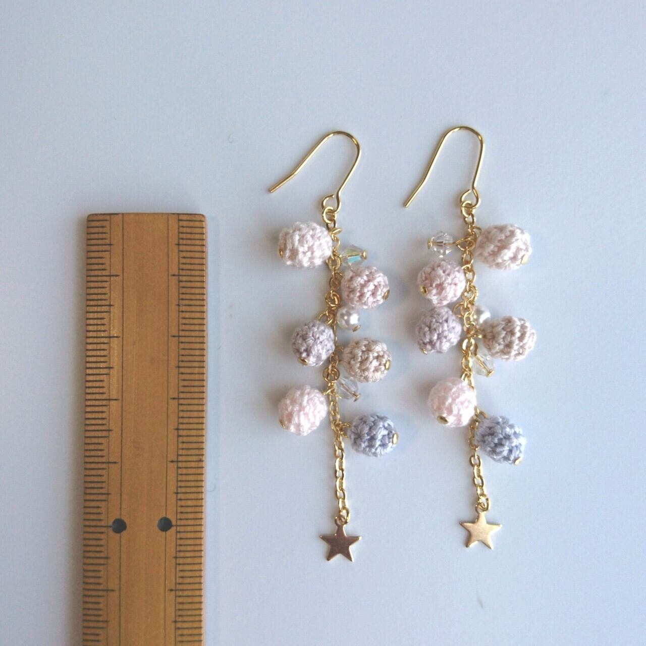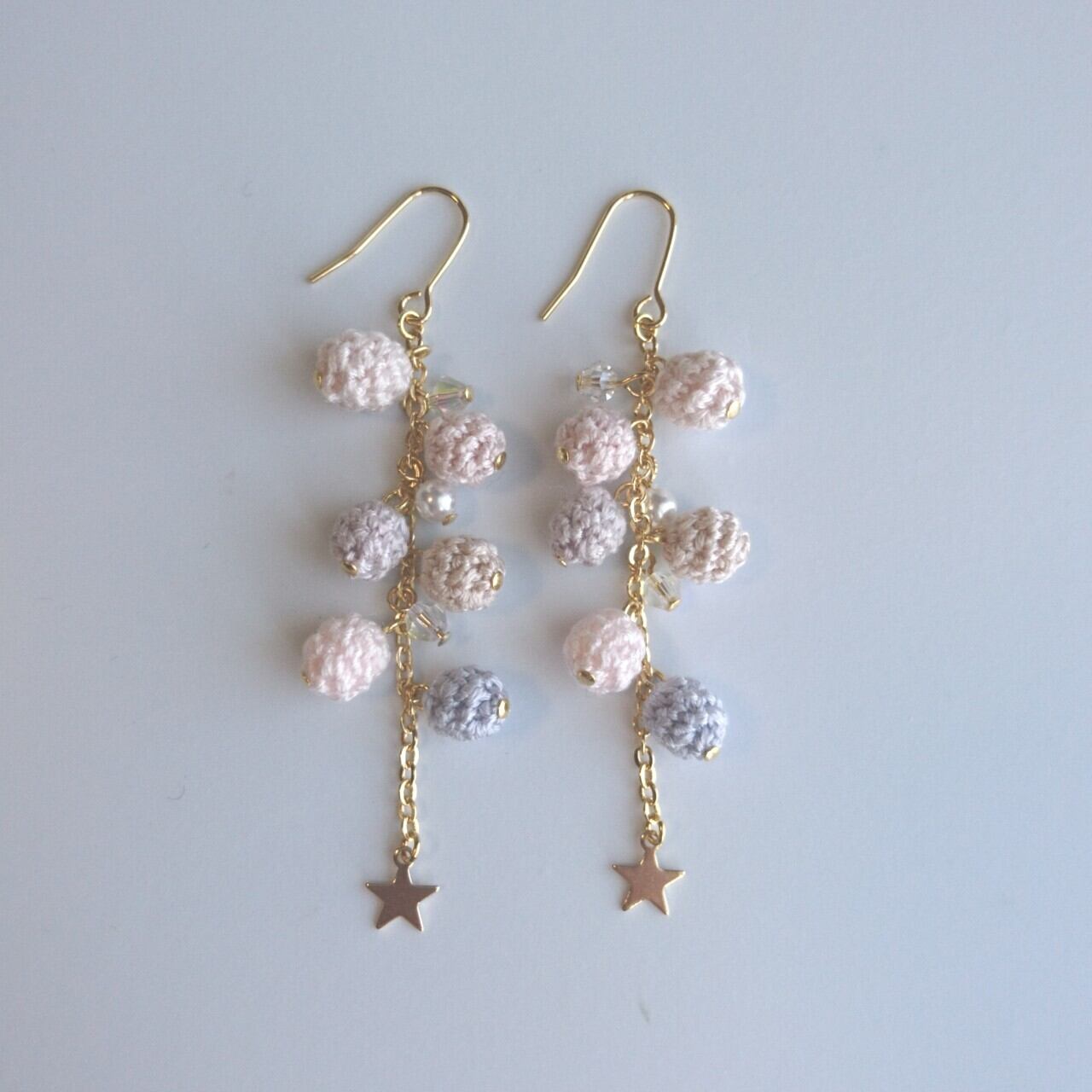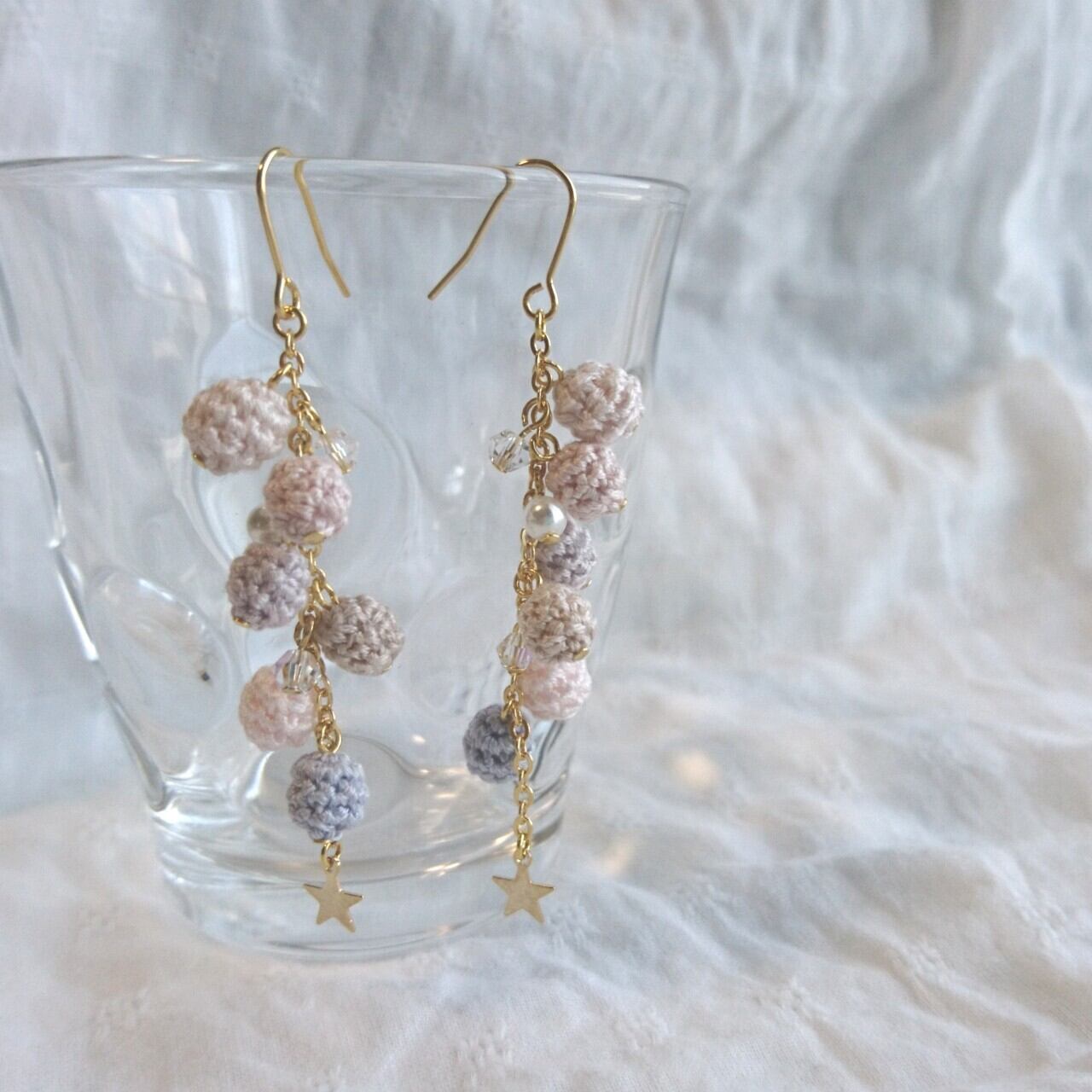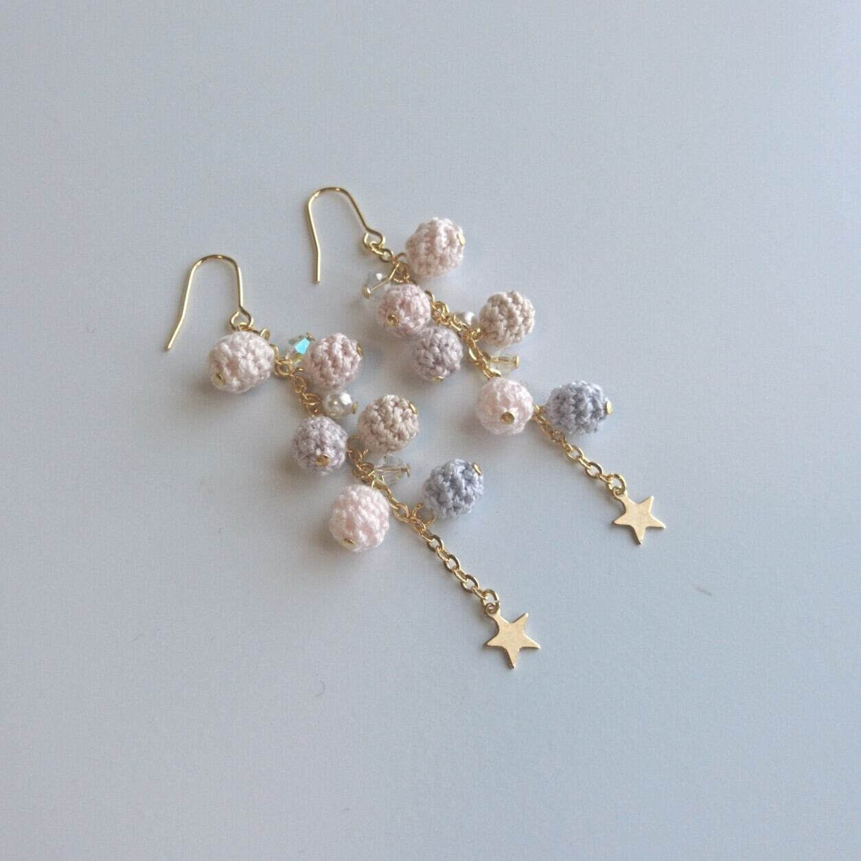 翼のような、少しずつ異なる淡い色を集めたピアス/イヤリングです。 ピアスorイヤリング、ご希望の金具をオプション欄にて選択してから、カートにお進みください。