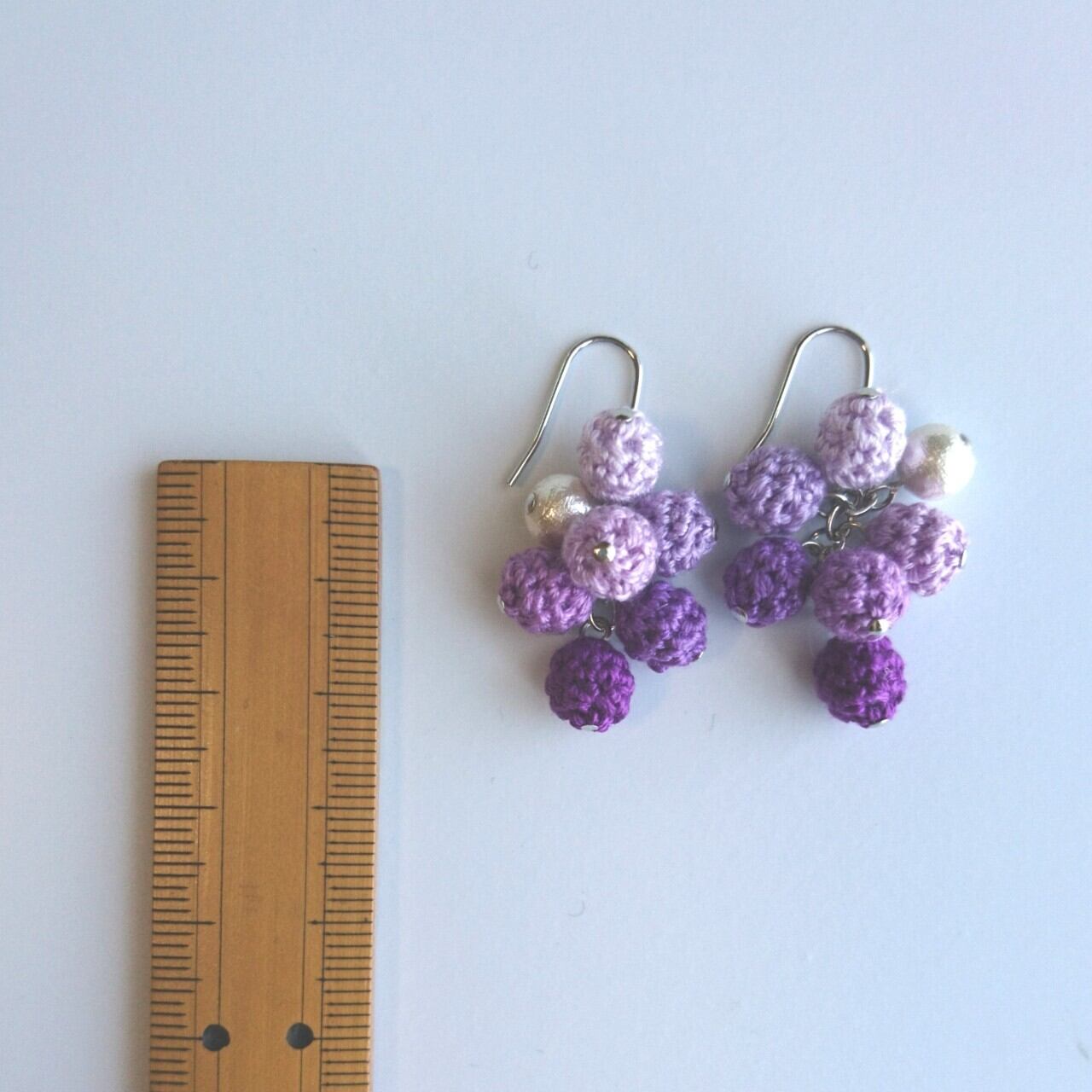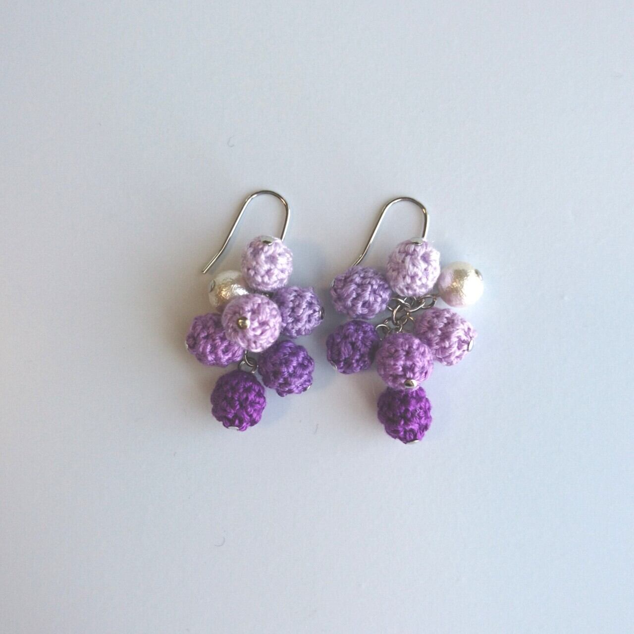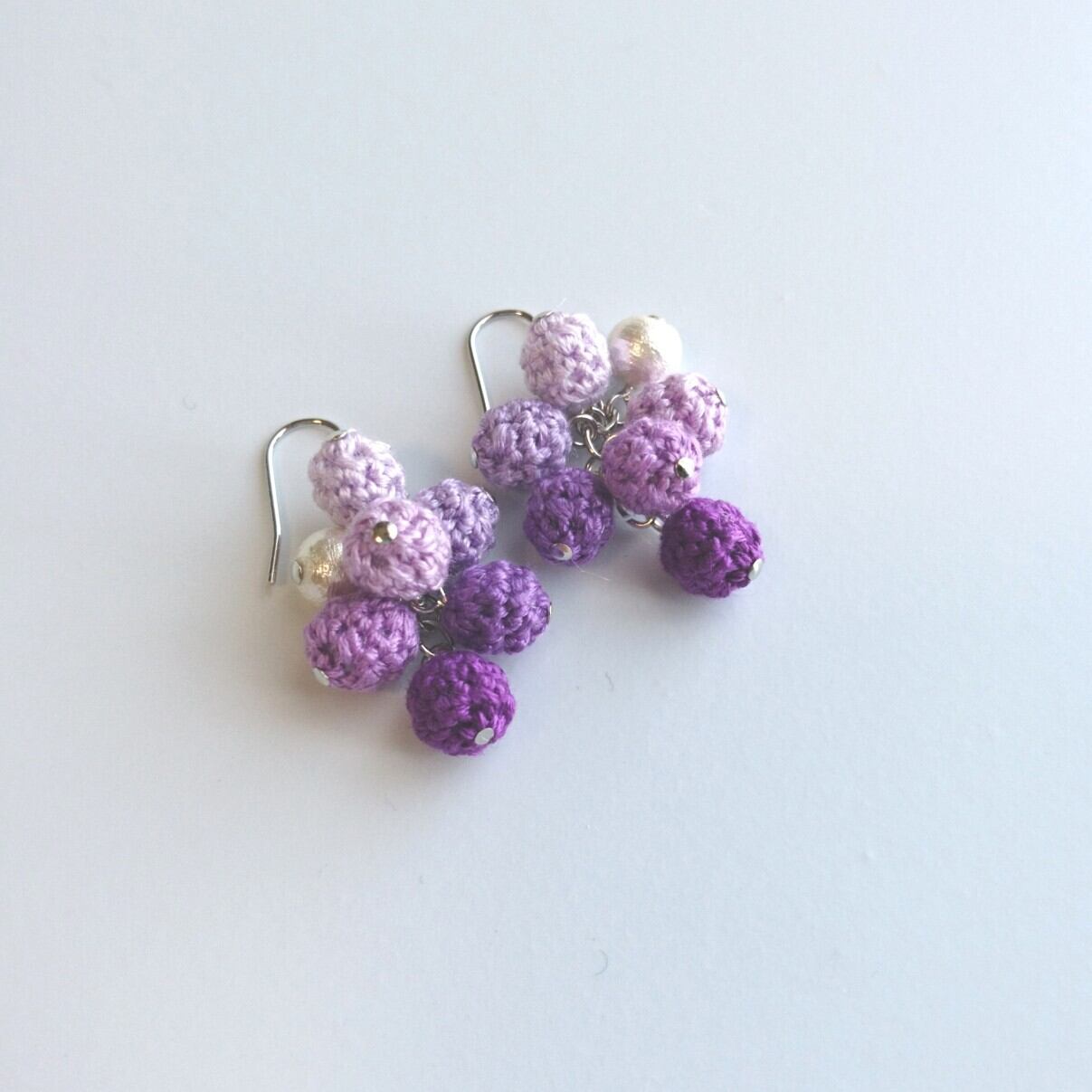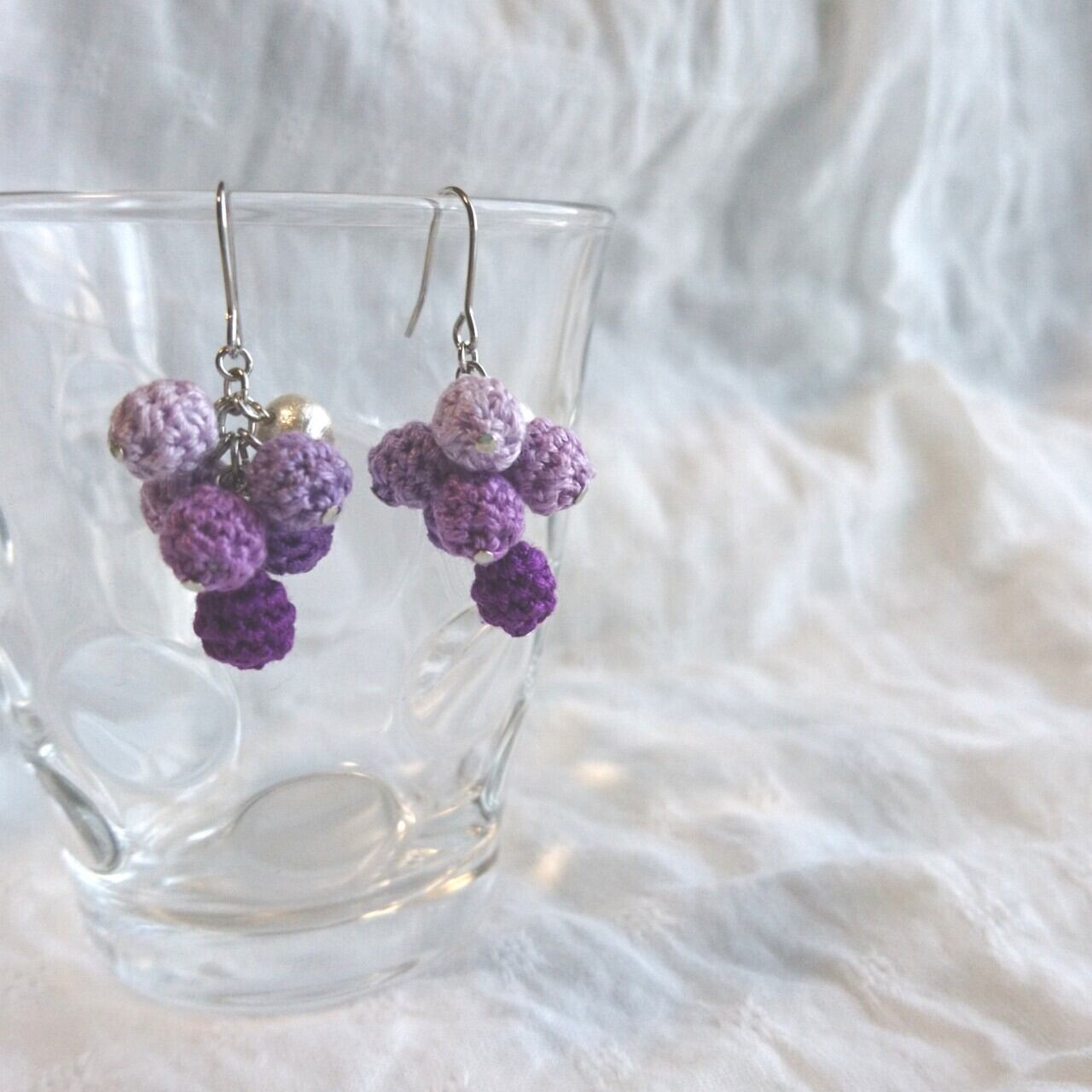 ぶどうをイメージした色、形で製作したピアス/イヤリングです。