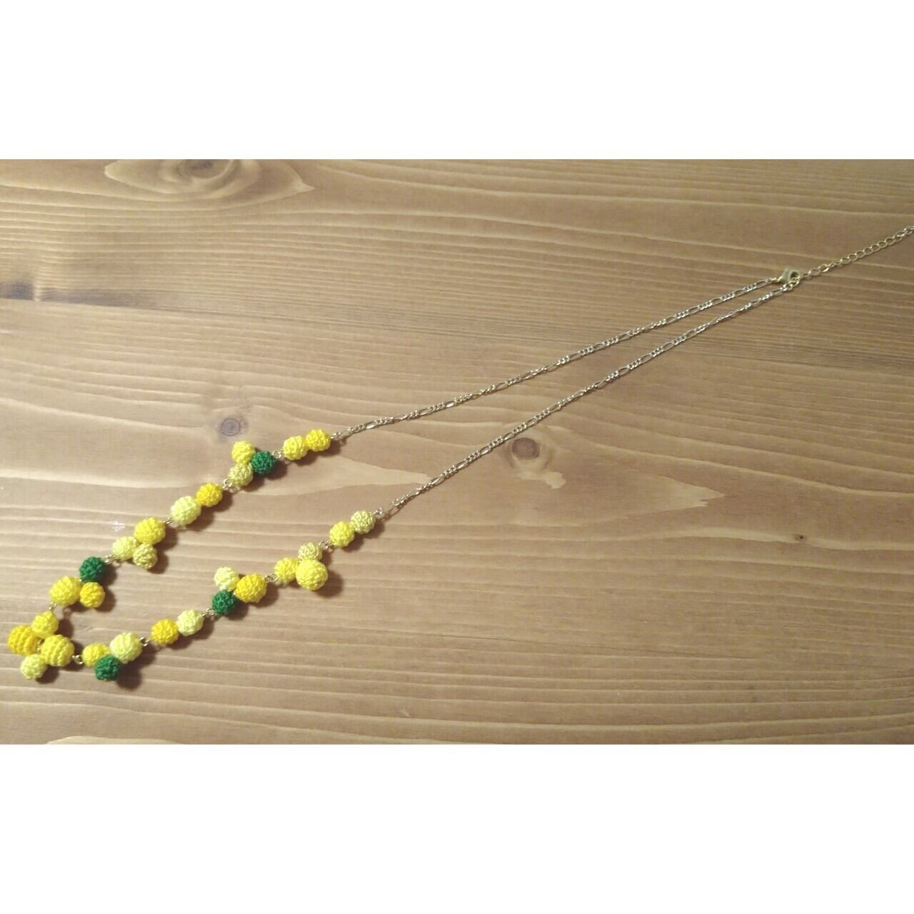 色味の違う数種類の黄色の糸を使用した、鮮やかで目を引くデザインです。