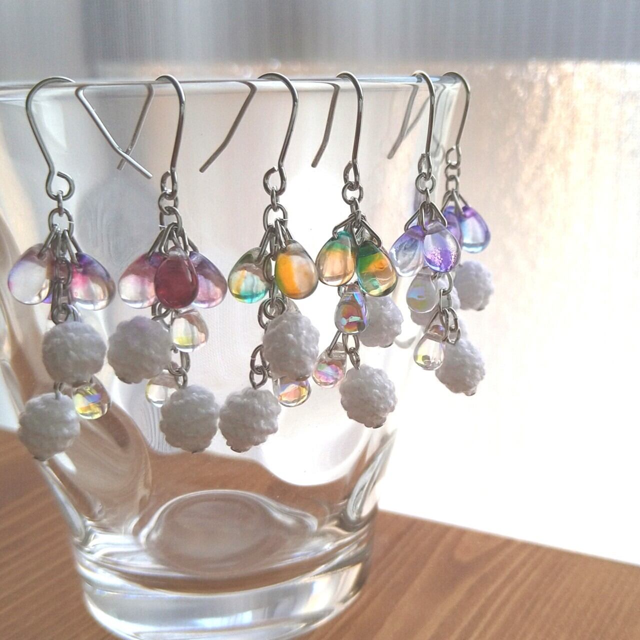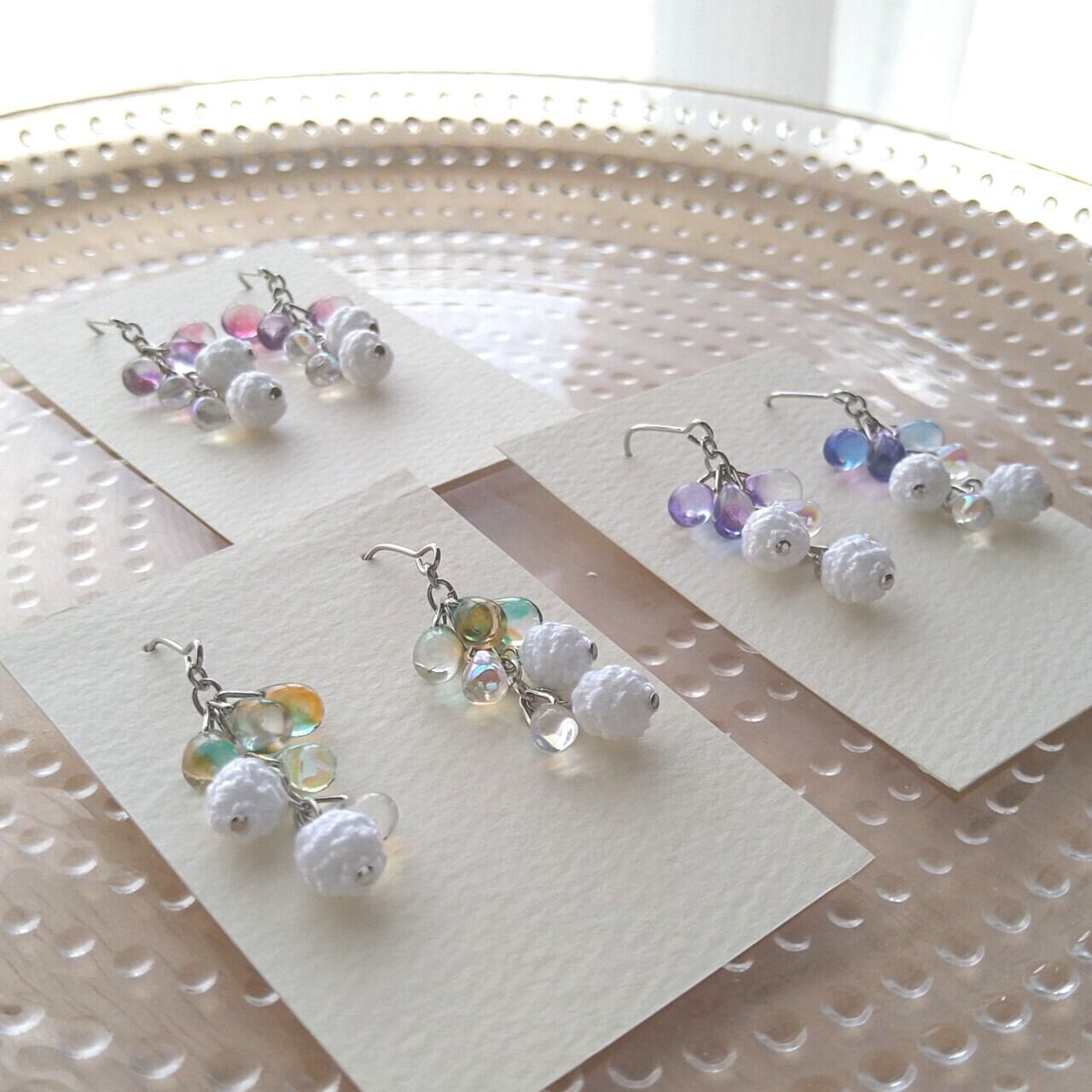 編み玉よりビーズを多く使用し、涼しげな、透明感のある作品になっております。